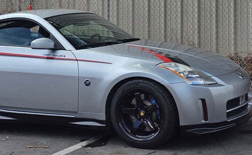 Brembo F50/B calipers are much, much larger than the OEM Brembo kits and have much higher braking force. NISMO says brake balance is in-spec with OEM Brembo rear calipers, so no risk of upsetting handling. Paired with 355x32mm racing rings and custom two-piece hats, they have vastly larger thermal capacity for heavy track or even full blown circuit work. This is the street model with dust boots and larger piston sizes (44/45mm). If used for a dedicated track car, we offer the bootless circuit-spec if desired.